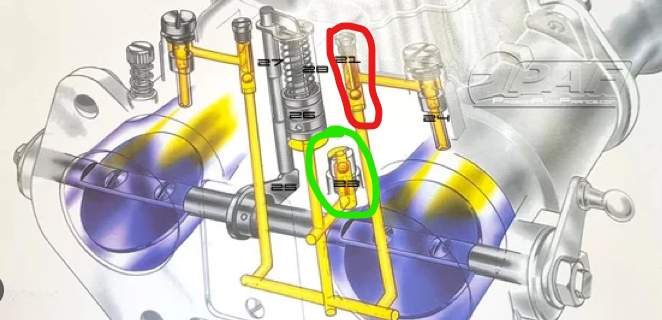 @Tommy : On trouve son nom et sa méthode un peu partout. J'ai téléchargé également son "manuel" de réglage des DCOE. Pour la valeur il y a pas mal de débats autour des 25. Certains préconisent plutôt 28/29 pour éviter toute intervention intempestive du circuit principal (secousses, virage appuyé notamment). En contre partie, si j'ai bien compris, la dépression nécessaire est plus importante, donc une prise de relai par le circuit principal plus tardive et donc un "trou" à l'accélération plus important. Dans tous les cas, c'est effectivement la base à vérifier avant d'aller plus loin.