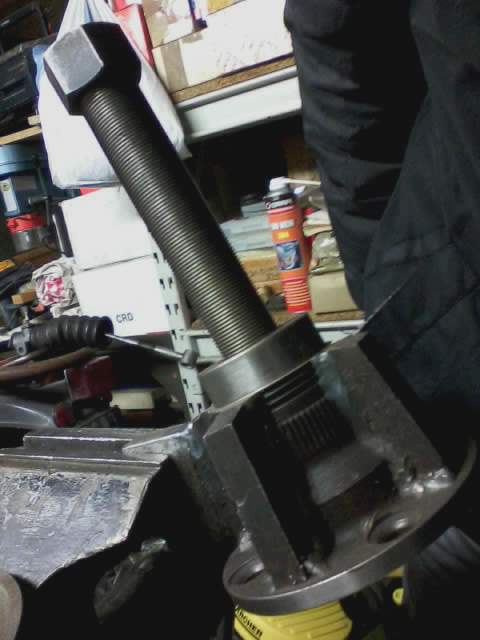 | bonjour a tous , outre que je signale pour les rhone-alpins que j'ai un extracteur à prêter si besoin ... je ne l'envoie pas par la poste ... ensuite , nous avons découvert cette semaine , un défaut de portée du moyeu cannelé arrière droit de ma spit (j'avais un jeux sur la roue détecté au contrôle technique) .... heureusement nous étions chez un tourneur ... nous avons rectifié la portée conique (entre la roue et le moyeux cannelé) là je dois avouer que sans un pro sous la main , je n'aurais jamais su résoudre ce problème seul ... solution pour vérifier la porté conique du moyeu sur la roue / 1 poser la roue sur un établi avec des cales pour la surélever. 2 poser le moyeux en place ... 3 vérifier la portée du moyeux sur la roue dans plusieurs positions ... il ne doit y avoir aucun porte à faux ... 4 si problème, vérifier avec une autre roue, pour savoir si le problème vient de la roue ou du moyeux canelé merci à jerome pour le coup de main pro sur cette opération |