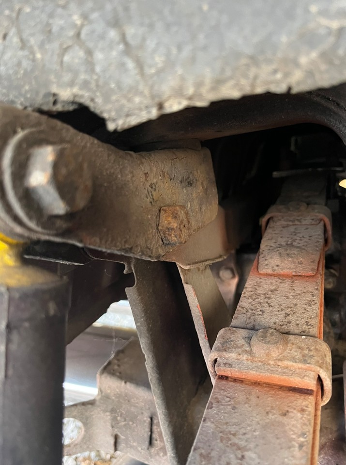 Je me suis faufilé sous la GT6 pour vérifier l’amortisseur arrière (voir photo). En y regardant, je me demande si ce que je vois n’est pas le kit de fixation permettant de boulonner les amortisseurs non rotoflex ? Pourriez-vous confirmer (ou pas) ?