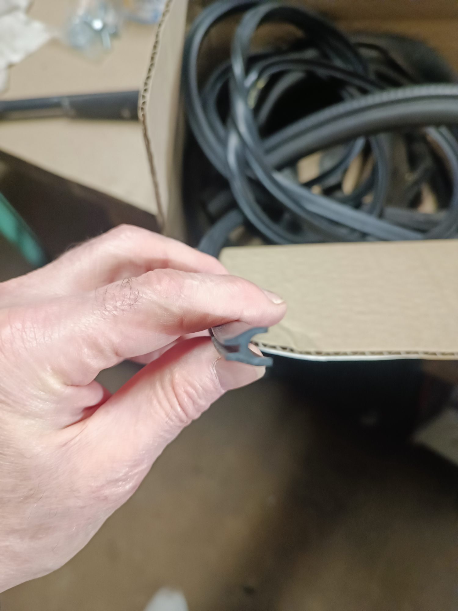| J'ai commandé chez betaset le joint en caoutchouc qui va à l'arrière et en bas du hard top. Photo du bas. Problème : impossible de le faire tenir en place. Comme il n'est pas armé et que l'emboîtement est très petit, il glisse et tombe. Je l'ai remplacé par un joint de portière avec le bord en feutre (photo du haut). Quelqu'un aurait-il déjà monté ce joint ? En le collant, peut-être ? |