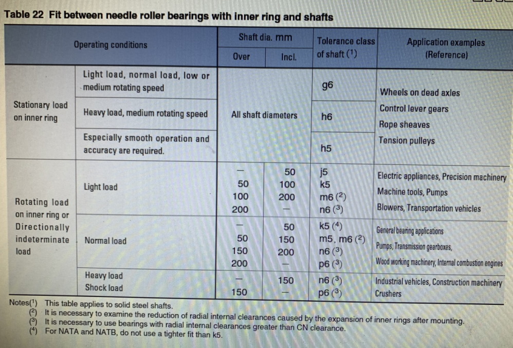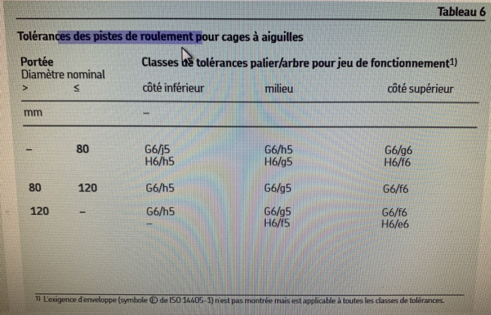 > charge normale (application gearbox=boîte) > diamètre d'arbre jusqu'à 50mm > tolérance de l'arbre = k5 (n6 pour charge sévère)