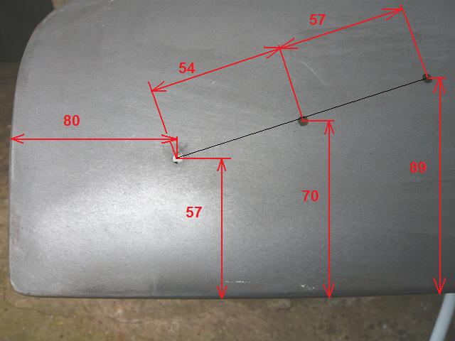 Merci Jpma35. Effectivement, les entraxes des picots servant à fixer le sigle ne sont pas les mêmes. 52mm pour 1 et 53mm pour l'autre. Finalement, j'ai collé du scotch de masquage sur la malle pour pouvoir tracer, j'ai repéré le 1er trou, que j'ai percé, puis j'ai posé le sigle dans ce premier trou, j'ai repéré le 2eme, perçage et pareil pour le 3eme. Un peu de peinture dans chaque trou par l'extérieur et par l'intérieur pour éviter la rouille . Une nuit de séchage et remontage ce matin. J'avais déposé la malle car un des picots tombait en face du renfort de malle et j'avais peur d'être embêté pour mettre l'anneau servant à fixer le sigle. Je suis assez content du résultat.