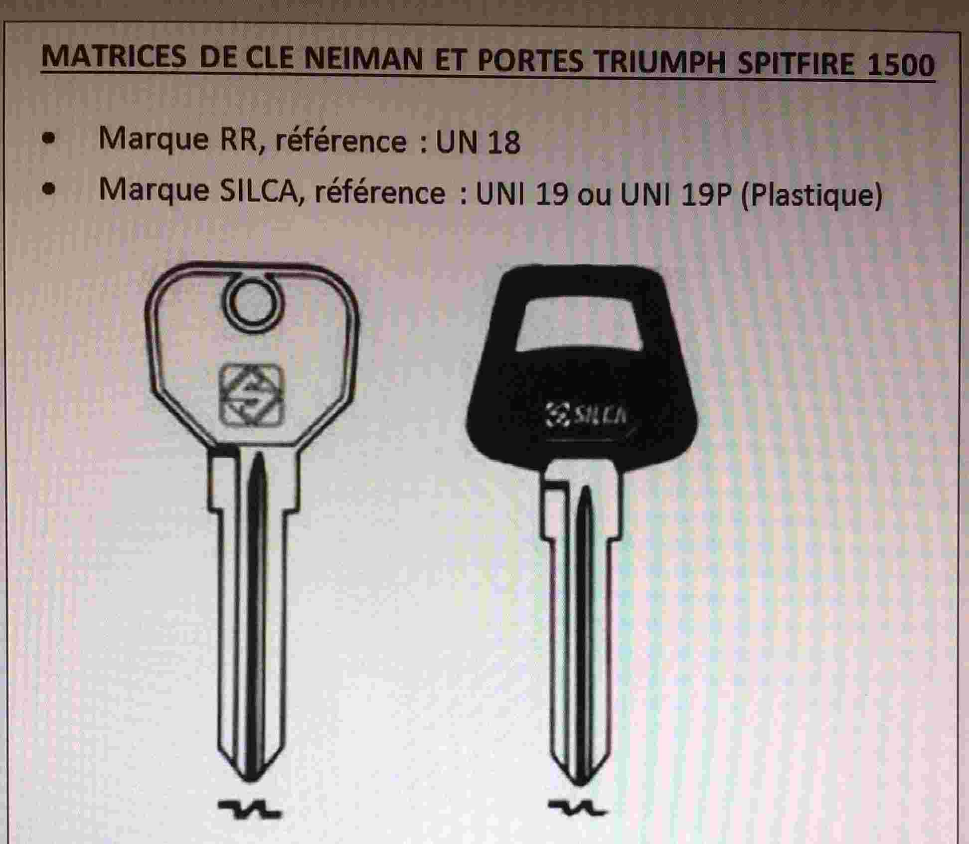| Bonjour , J'ai utilisé une entreprise qui refait nos clés a partir de la photo de nos vielles clés ! Ainsi ce sont des clés neuves , pas des copies de clés usées . J'ai fait faire deux jeux neuf , toute les clés fonctionnent bien . A priori les clés sont codées, à l'époque j'avais payé 68 dollars,port compris ( site Australien de mémoire), pour deux clés de Neiman et deux de coffre. Voilà pour ceux que veulent des clés neuves ! Oops, le site : KEYS4CLASSICS Jean-Charles |
