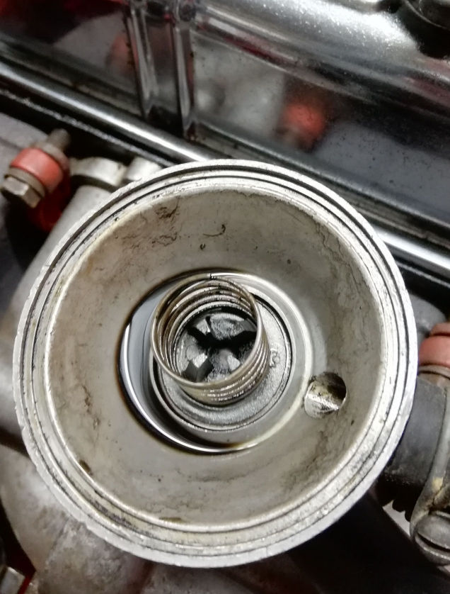 | Bonjour Paul, -Sur GT6 MK1/2 & premières MK3 : Bouchon ventilé avec tamis (ta photo) utilisé conjointement avec soupape de régulation Smith. -Sur dernières MK3 : Bouchon non ventilé, pas de soupape Smith, cache-culbus avec tamis intégré (bossage) et T de recirculation via 1 piquage sur chaque carbu. cdlt :) |