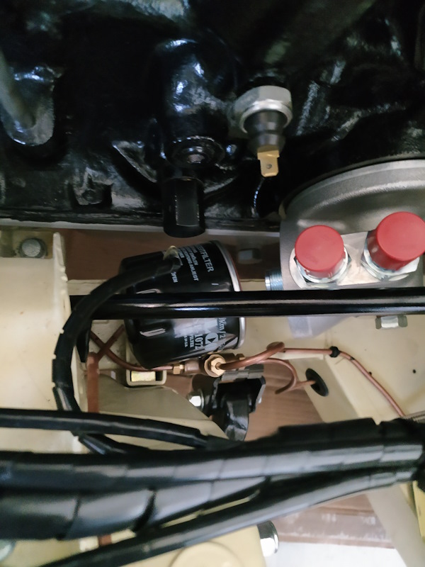 Sur GT6/Vitesse, le longeron de chassis (et la colonne de direction sur LHD) ne permettent pas une grande latitude de réglage mais l'important est que le filtre soit en partie incliné vers le bas.