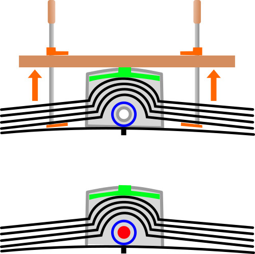 Oui c’est à peu près ça il me semble. Il faut écarter les lames supérieures de la lame inférieure (par exemple avec des serre-joints et une traverse en bois comme sur le schéma ci-dessus).