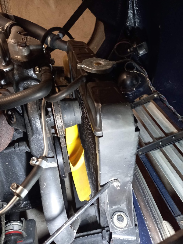 Sur une Vitesse, le problème ça va être de trouver où mettre le ventilo électrique. Devant, il y a 19 mm entre le radiateur et la traverse. La calandre est presque aussi proche. Et derrière, il y a 12 mm entre la poulie de pompe à eau et le faisceau du radiateur. En démontant l’ancien ventilo, on peut éventuellement en monter un pas trop grand électrique dans le coin inférieur gauche. Mais, c’est loin d'être une configuration idéale.