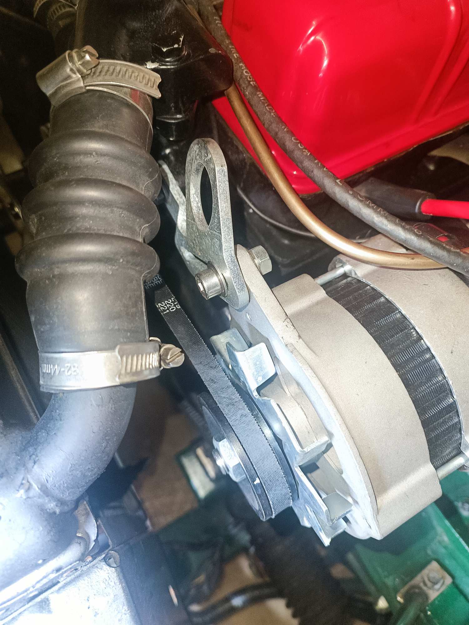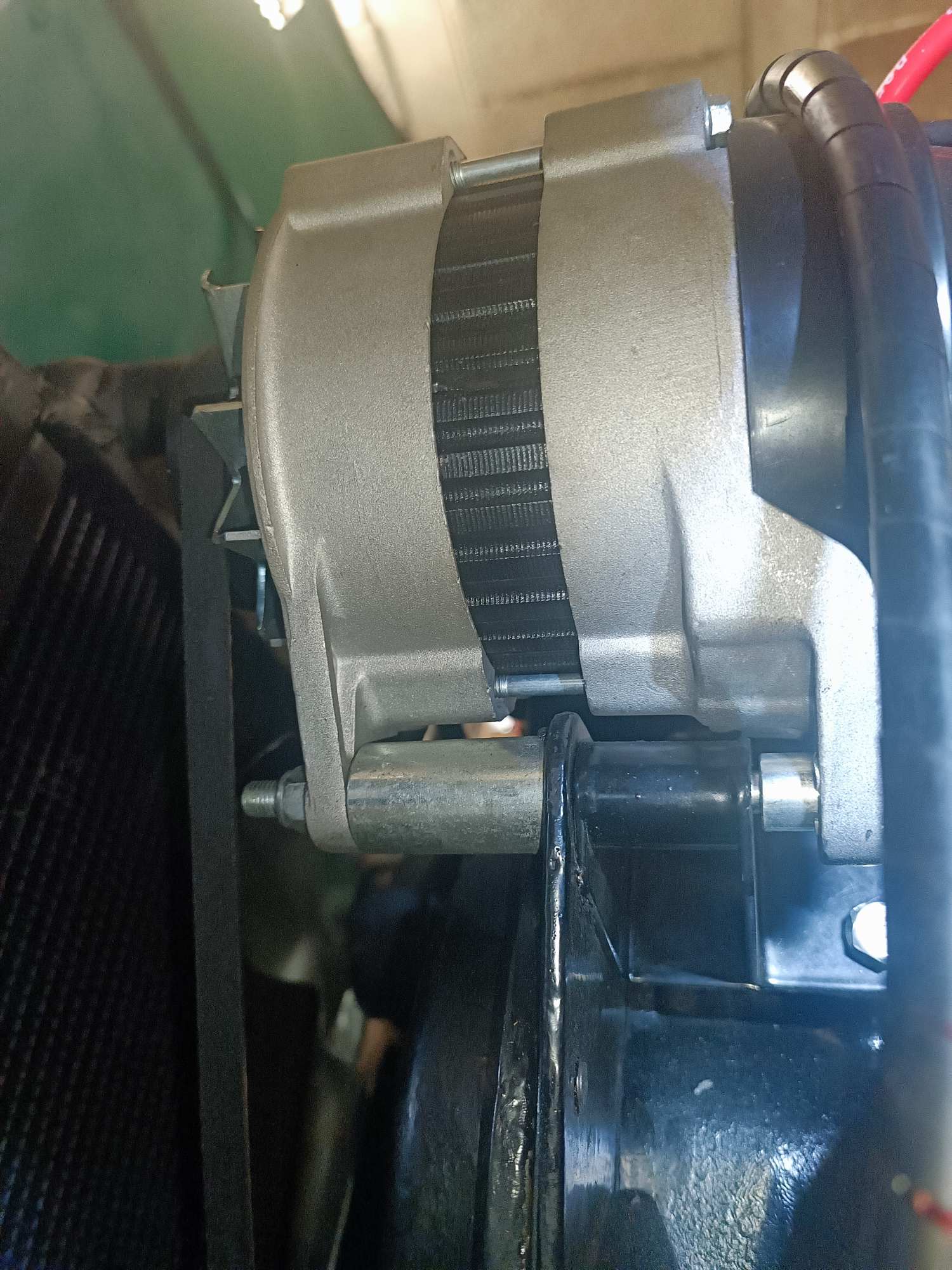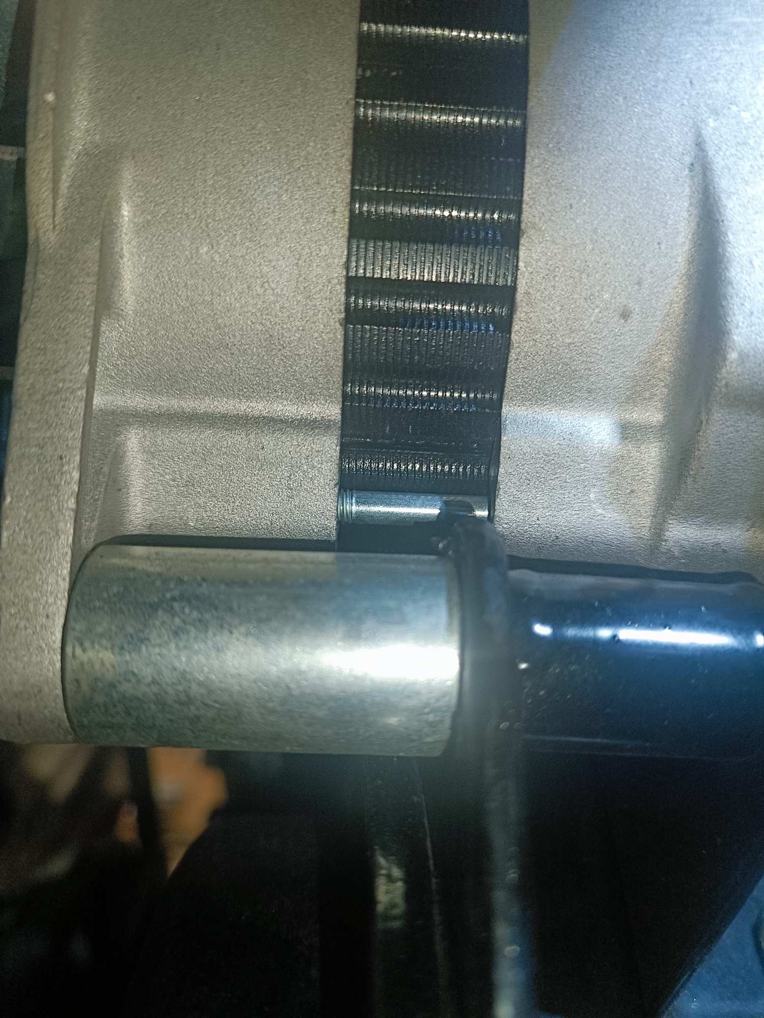 Idem concernant la patte de tension à l'Av, à écarter de la pompe à eau afin de conserver l'alignement des poulies.