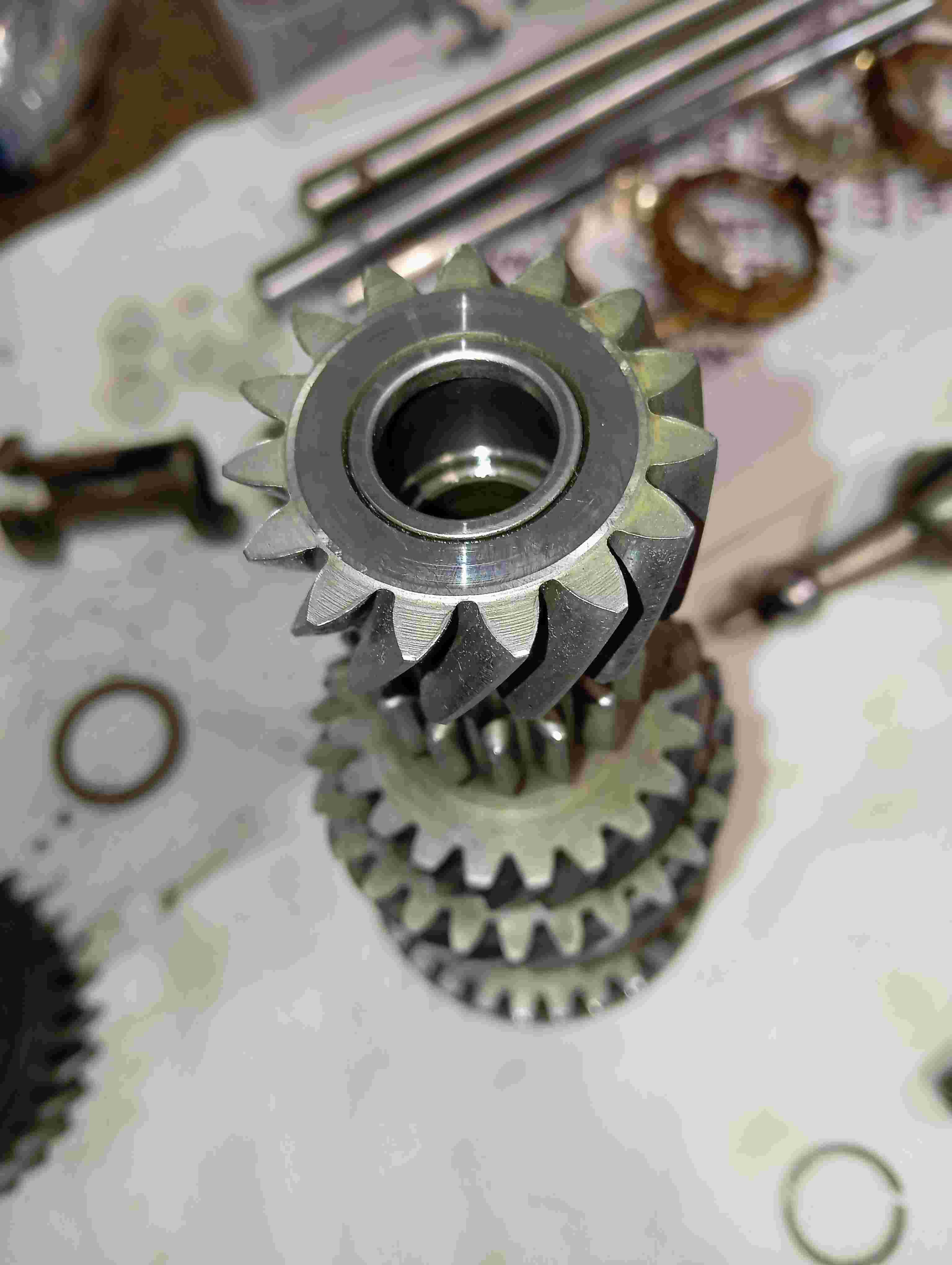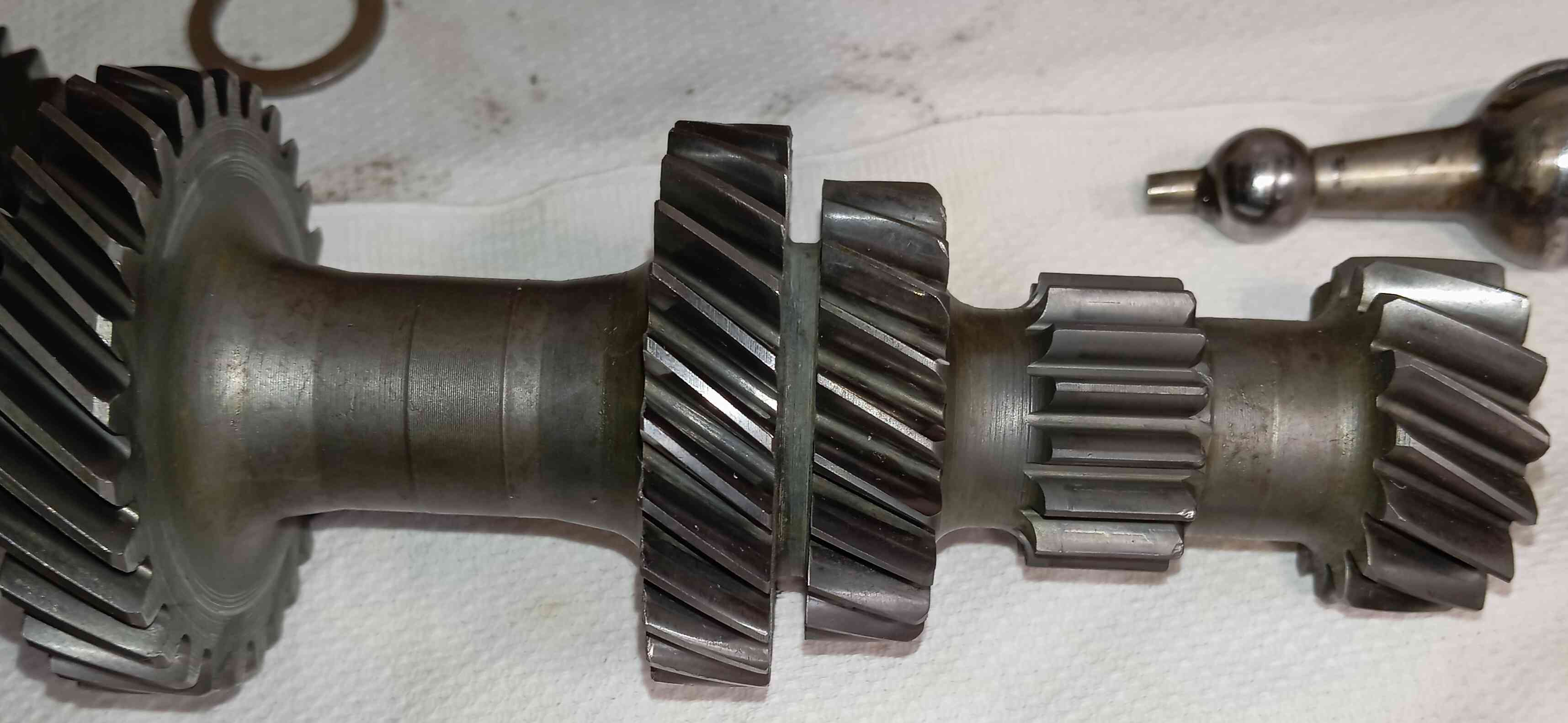 Le controle visuel m'a permis de detecter que le pignon de marche arriere est en sale état.