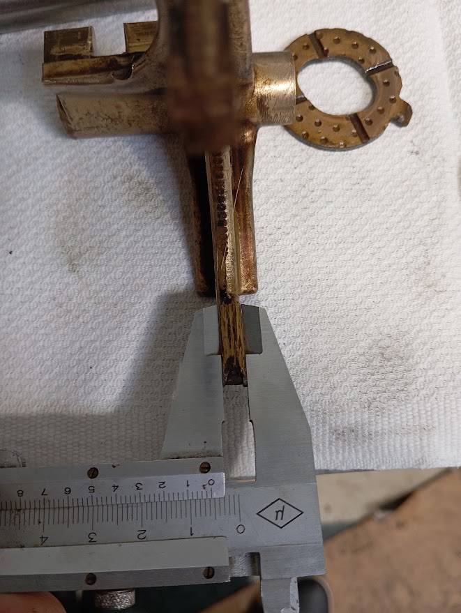 Parfait merci pour les infos. A confirmer demain car mon atelier est distant de ma maison mais de mémoire usure uniquement du coté présent sur la photo. L'épaisseur mesurée est de 5.5 mm. A noter que l’intérieur de la fourchette est dentelée voir photo. Est ce lié a la fabrication ou une alerte sur un éventuel problème.