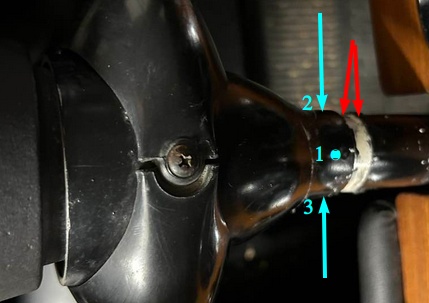 ![]() Merci à toi, c'est le but du jeu ;). Le bord du col dessoudé de la colonne et celui du tube doivent être rapprochés bien en butée (flèches rouges) avant de percer les 3 trous au diamètre des rivets pop. (pas à 120° mais un au milieu au dessus et les 2 autres de chaque côté) (flèches bleues). |