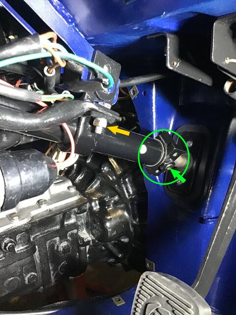 ![]() Pour régler le tube il suffit de débloquer un peu ses 2 vis et ses 2 écrous de fixation (flèches jaunes) jusqu'à permettre le coulissement. Ne pas trop desserrer les fixations dans l'opé. (pour les vis du haut, selon le modèle il faudra peut être utiliser une clé BTR en cote pouce) Pour régler l'axe central de la colonne, il faut agir sur l'étrier situé après le tube (cerclé vert). Débloquer le gros contre-écrou puis à l'aide d'une clé BTR (en cote pouce!) débloquer un poil la vis de pression centrale (flèche verte) SANS TROP la desserrer, juste pour permettre le coulissement du volant et de la moitié haute de la colonne autour de la colonne basse fixée à la crémaillère de direction sur le chassis). Bon courage! :) |