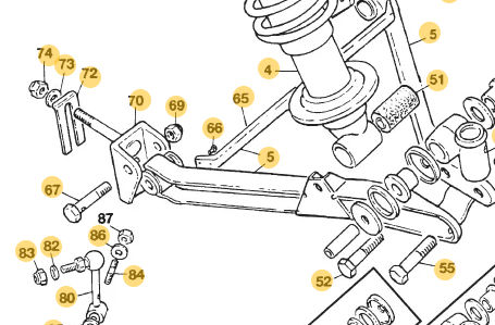 ce sont les cales ( 72 sur le dessin) qui permettent d'écarter plus ou moins le triangle inférieur.
