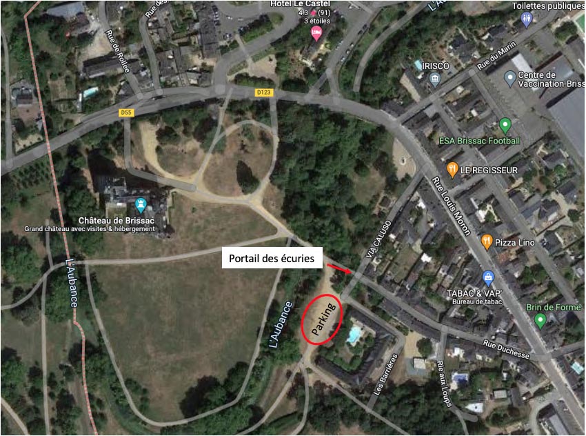 Lors de notre visite du Château de Brissac, nous avons obtenu l'autorisation de stationner nos voitures près des écuries dans le parc du château et à proximité de celui-ci.