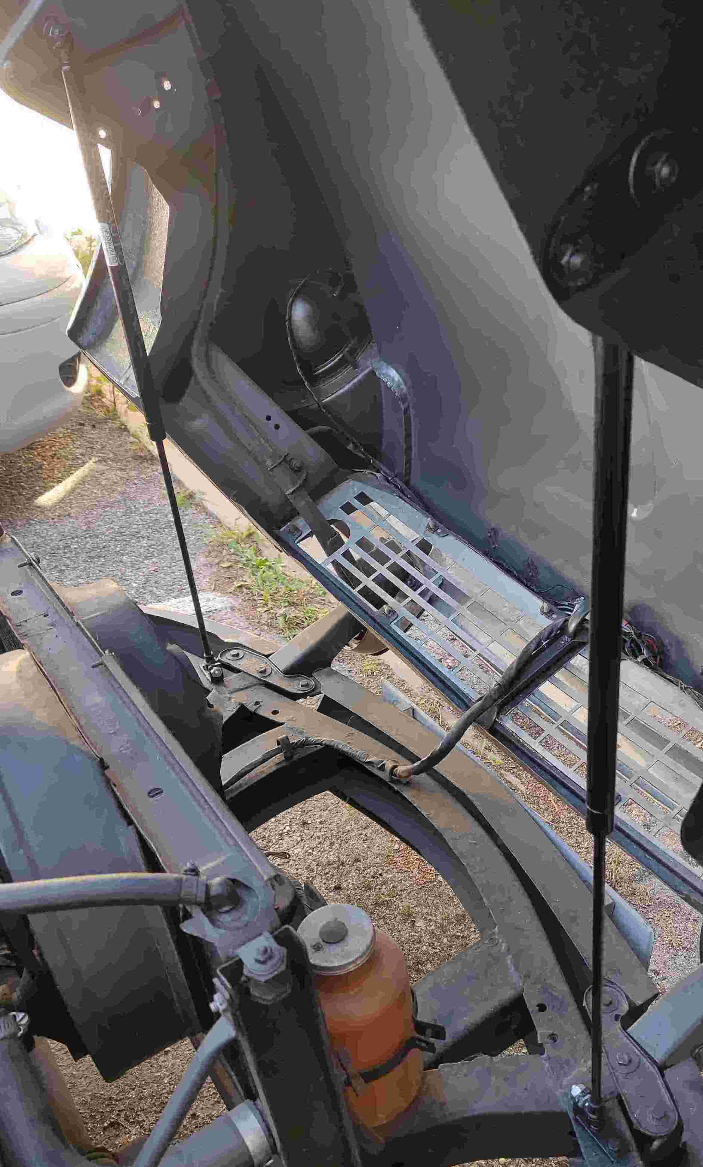 | bonjour jpc84 en essayant de comprendre mon problème , je me suis aperçu en grossissant la photos de ton montage de tes vérins , que j'avais mis la fixations de mes vérins par sur le châssis mais sur la jupe en U qui porte la plaque d'immatriculation , alors j'avais pas fait attention puisque que je pensais que j'avais fait le même montage que le tiens , alors je sais pas si ça une incidence sur le recule de mon capot , c'est pour comprendre car la béquille me vas très bien pour le moment cdlt |