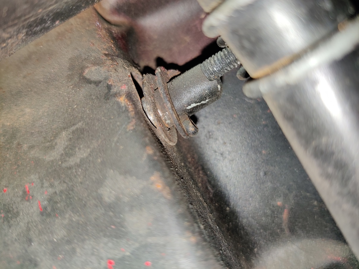 - elle entre dans la caisse juste sous le bac à batterie tel que sur le schéma, avec la rondelle double ressort 20, la rondelle plate 21 et la goupille 22 (et théoriquement avec le palier caoutchouc 19 : moi il y avait un vieux passe cloison trop grand)