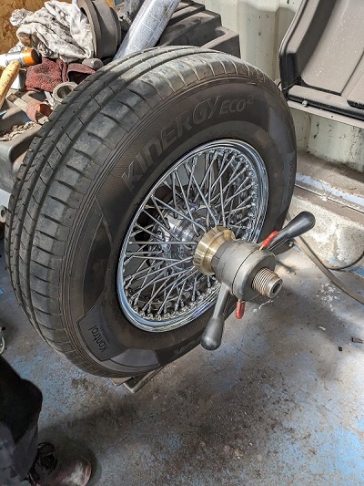 | Bonjour, J'ai des jantes à rayons sur la Stag. C'est beau, mais ne sont pas tubeless. Pour la face arrière: un gros cône va bien et pour l'avant, j'ai acheté à petit prix un vieil écrou de roue chez Dyngo que j'ai fait aléser au diamètre de l'équilibreuse. Cet écrou soutient la jante comme sur la voiture. Pas cher et ça fonctionne très bien. bon WE |
