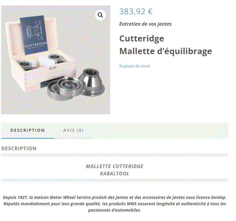 pour info le Kit complet pour l'équilibrage approprié des jantes MWS coûte quand même 383,92 euros. ça pique §§§§ |