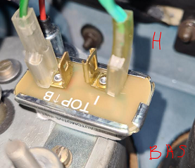 | Bonjour Geo, Ton régulateur doit être orienté avec la flèche pointant vers le haut (Top). La masse est un fil noir à cosses plates multiples connectant en série la masse sur l'un des goujons de fixation de chaque instrument. ;) |