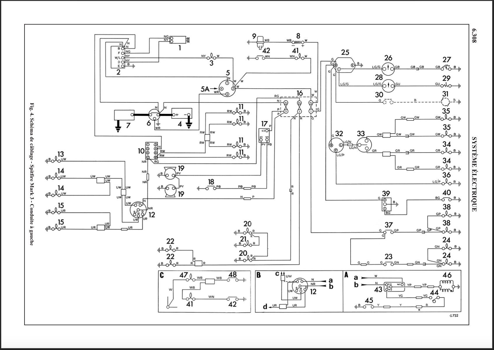 | Comme j'ai écrit dessus: circuit feux SANS fusibles, prudence ! En plus, tous le courant des feux passe par les interrupteurs. Avec le temps ça peut poser problèmes. Solution: placer des relais pour codes et phares. Pour une voiture qu'on roule rarement dans la nuit, pas trop important (je crois), je le fait que dans mes Range Rovers (même problème). Et bonne année ! |