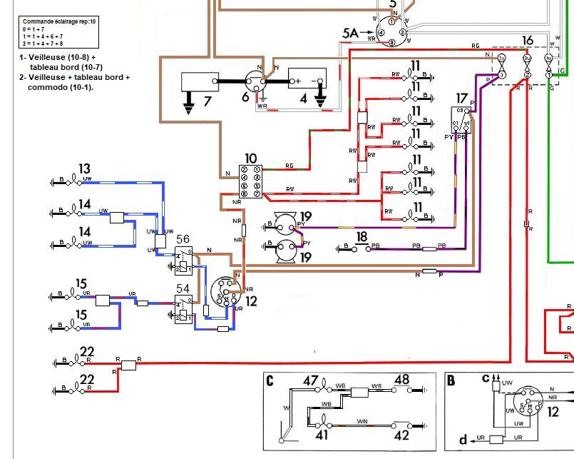 Pour compléter, ce schéma intègre les relais des phares avant ainsi qu'un nouveau câblage de l'interrupteur permettant d'avoir les branchements affichés dans le cartouche.