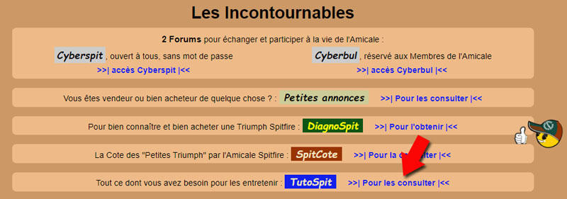 Amicale Spitfire Bienvenue sur Cyberspit ! Ce forum est réservé aux discussions autour des Triumphs. Lisez-moi |