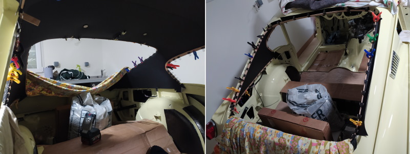 | Salut Geo, Effectivement j'ai lu aussi qu'il y avait potentiellement débat sur l'ajout d'un joint. C'est aussi une étape que je vais avoir à passer et j'avais prévu de ne pas mettre de mastic en plus. Aurais-tu quelques remarques / astuces / pièges à éviter pour la pose stp? Ton ciel de toit n'était-il pas noir à un moment donné? Top boulot en tout cas, bravo. J'aime beaucoup la couleur de ton tableau de bord. Bon courage pour la suite, Marco |