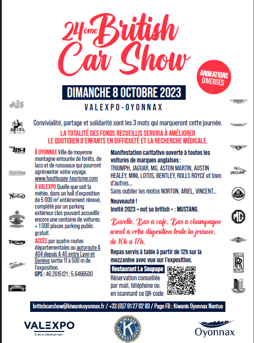 Le lendemain Dimanche 8 octobre à Oyonnax m^me secteur, il y a le British cars show à Valexpo (couvert). Il va falloir que je fasse un choix car c'est deux manifestations proches de chez moi.