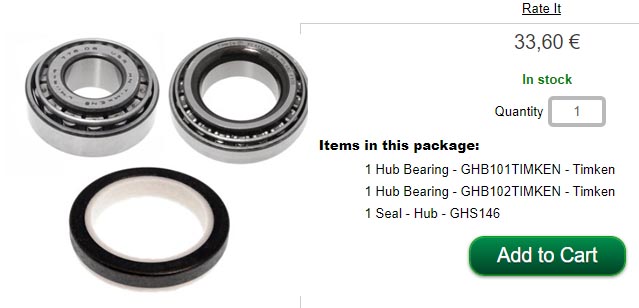 | Bonjour Michel, Les 2 roulements : 20 & 17 La goupille 23 à remplacer impérativement Petite mention concernant le joint feutre 16 et son support: Les refabrications ne sont pas à la cote... Donc pour éviter les prises de tête (mise en place du support dans le moyeu + retaille/compression du feutre + réglage du jeu impossible) et surtout éviter de compromettre la sécurité suite à une mauvaise applique des roulements.. , bref, je te conseille de remonter ceux d'origine si en bon état! ;) Note que les roulements peuvent généralement être obtenus au détail, en présentant le modèle, chez ton spécialiste local en matériel industriel.. Au moins tu éviteras les roulements sans nom "made in là bas".. :)) |