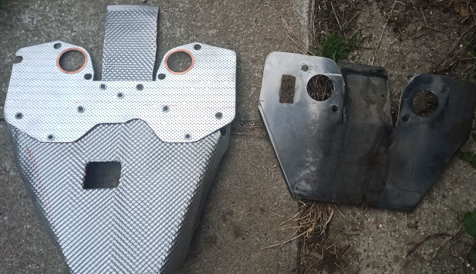 A droite l'écran inox. A gauche le nouveau en multicouche et alu gauffré.