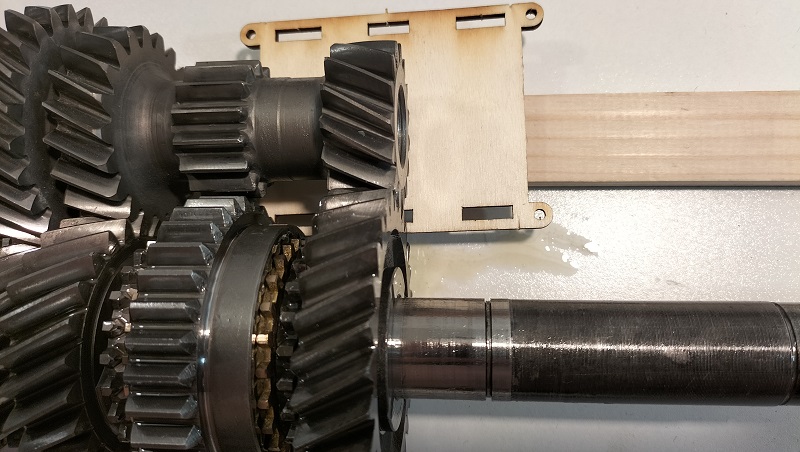 Normalement ton arbre principal doit reculer à fond contre la grande rondelle rainurée et te laisser un petit jeu de fonctionnement pour le pignon.