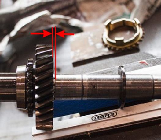 La rondelle vient bien en appui sur l'épaulement. Le pignon de première a un jeu très léger.
