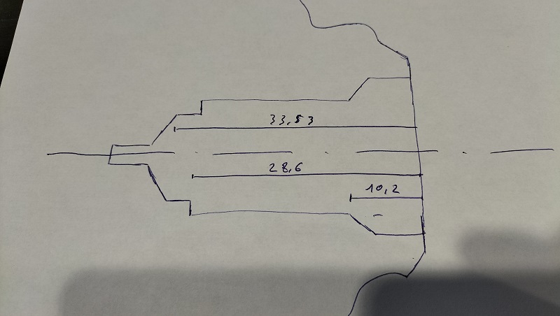 Sur un arbre TR7 similaire mais + long, un dia intérieur de 30mm dégage l'épaulement.