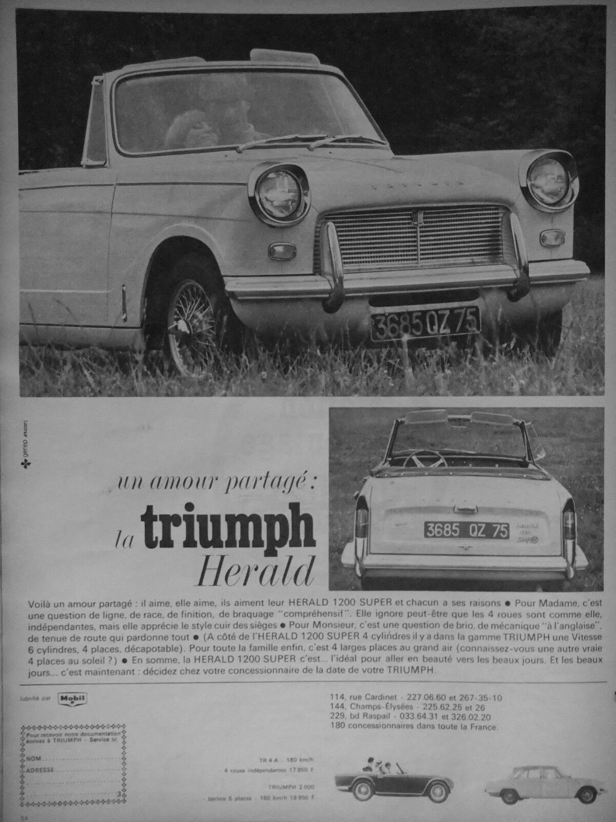 J'ai trouvé deux publicités et une brochure pour une Triumph Herald 1200 "SUPER".