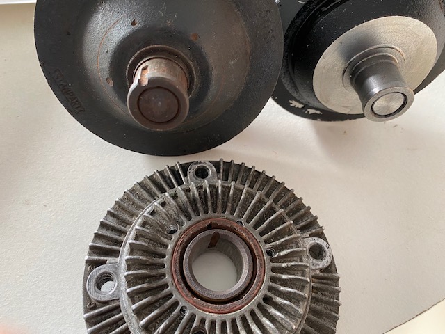 Comme le montage a déjà été bricolé (clavette/goupille), possible que le visco en place ne soit pas celui d'origine, avec un alésage d'un diamètre supérieur ou bien ce dernier est usé hors cote ?