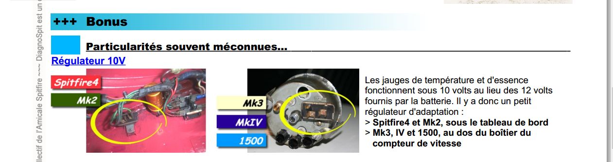 ma jauge d'essence de fonctionnant pas (constamment en mode "plein"), j'ai commandé chez JAMES PADDOCK un voltage stabilisateur (photo ci-joint) pour ma SPIT MK2.