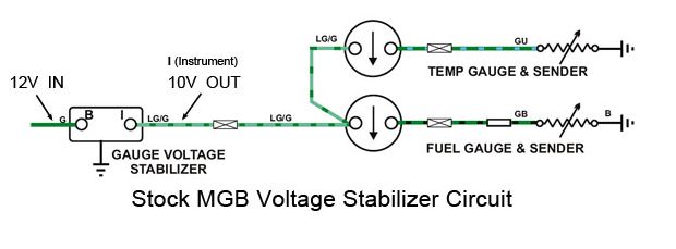 Le stabilisateur bilame ou le régulateur 7810 ont un but c'est abaisser la tension de la batterie à 10Vcc le plus précisément possible car les système d'affichage (comme la jauge à essence ou autre mano) sont prévu pour fonctionner sur base de la norme "0 à 10 Volts". C'est à dire que l'afficheur de la jauge à essence (par exemple) indique 0% lorsque le signale revenant de la jauge de niveau du réservoir est de 0Volt et l'afficheur indiquera 100% lorsqu'il recevra le signal 10 volts. Pour le reste c'est proportionnel 10%=1V, 50%=5V, ...