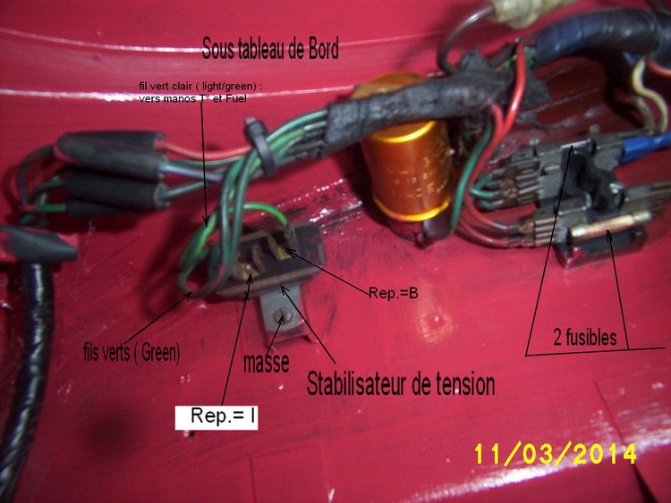 Bonjour et merci pour cette aide . 1) la fabrication est en effet , pour des spécialistes comme vous , une intéressante solution . Dans un premier temps je vais monter le "new stabiliser" acheté et voir ce que fait mon mano de T°??? (et la jauge essence) . 2)Le modèle de Jpma35 est un peu différent du mien (photo de "ma" spit -11/12/2014 ..20h49 ) mais surtout les branchements B et I correspondent au schéma MK3 , alors que sur "mon" montage les fils sont inversés : va comprendre ? (erreur du précédent proprio ???) . C'est bizarre car les jonctions "mâle/femelle" correspondent sur "ma spit" ? . Je dois donc respecter impérativement B= + batterie et I= vers manos ???et donc modifier mon cablage ??? Merci AA
