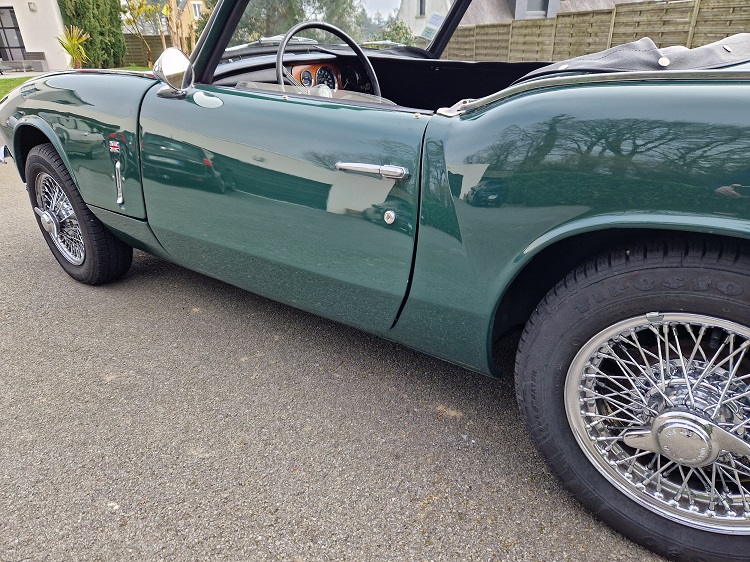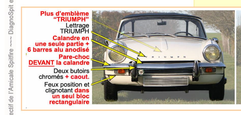 L'ajustement moyen des portes dans leur encadrement: peut-être (?) la conséquence d'une restauration carrosserie poussée, mais effectuée sans le support du chassis, ou bien il faut juste prévoir un réglage affiné des parties concernées (capot/portes/jupe AV). (tout en sachant que des jours parfaits sont rares sur les ouvrants des Spit.)