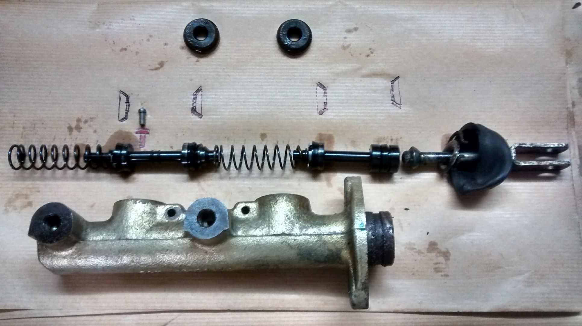 | Bonjour, Question bête : je recherche un éclaté de maitre cylindre de freins de 1500 afin de vérifier l'empilage à partir du circlips extérieur : normalement circlips rondelle sur la tige de commande qui appuie sur le piston. Amicalement Jean Luc |
