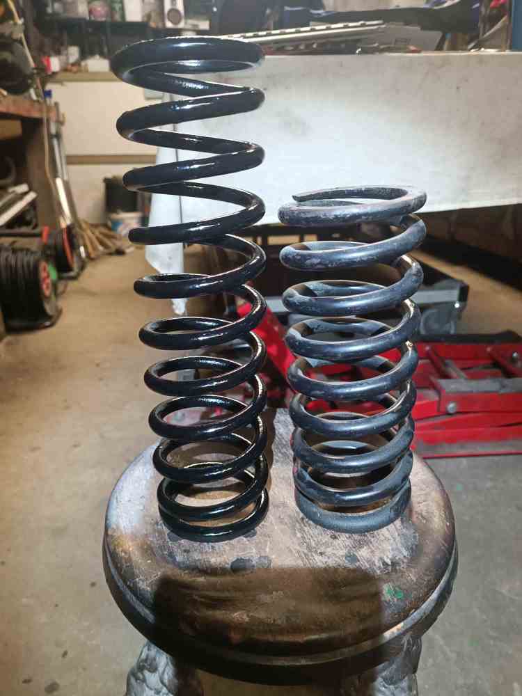 | Ma spit mk3 a nettement le nez trop bas. J'avais acheté d'occasion (presque neufs) un jeu d'amortisseurs spax, avec le plateau non réglable à l'avant. Les ressorts étaient fournis avec. Il manquerait une spire sur le ressort par rapport à l'origine. Le mieux, c'est de remettre les ressorts d'origine ? Acheter des ressorts neufs, c'est prendre le risque d'une refabrication aléatoire ? | |