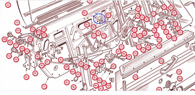 | (Le fichier "butée gt6 .PNG" est trop volumineux ou le nombre d'élement maximum est dépassé et n'a pas été enregistré) Bonsoir les gars, Eh bien il me manque les 2 arretoirs "biscornus" qui sont à droite sur chaque photo de JP. Mystère...mais en revoyant mes photos de démontage, ils n'étaient simplement pas présents à l'achat de la GT6 J'ai réussi à positionner les autres butées, enfin je pense. Oui c'est cela, en lisant l'explication de Tommy, c 'est effectivement le retour à angle droit en partie supérieure, car en actionnant le leve vitre celui ci vient buter en fin de course ( vitre fermée ). voir photo vue de dessus de la porte gauche :-) |