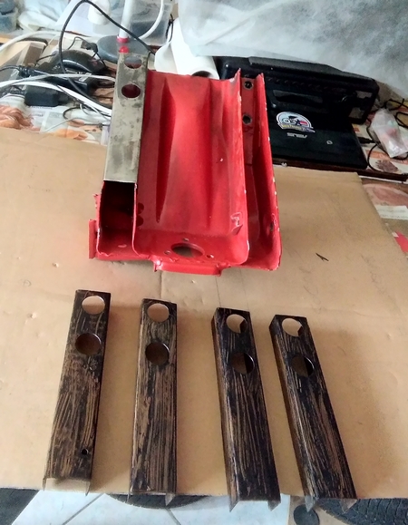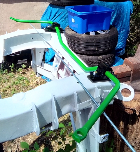 ![]() on avance doucement pendant l'été, il faut prendre un peu de vacances, mais les poutrelles ont été renforcées et peintes comme le châssis qui a reçu des supports parechoc MK2 en remplacement des supports MK3... |
