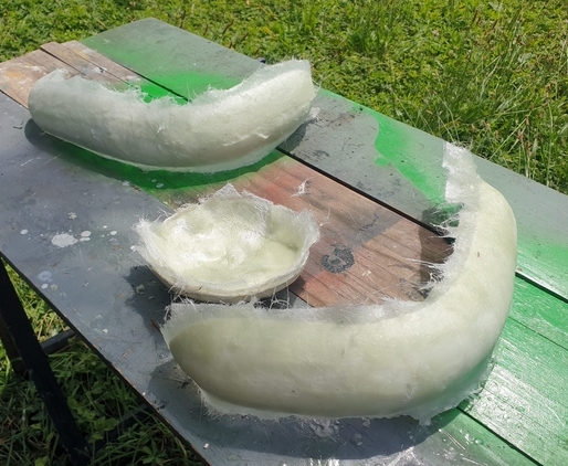![]() C'est un boulot assez 'dégueulasse' de travailler la fibre mais très motivant, j'ai hâte que l'on démoule tout ça ! |