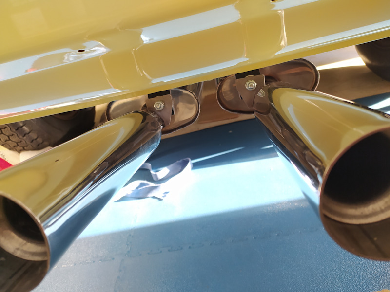 fixe tes silencieux le plus haut possible, moi j'ai fait deux petits trous dans le coffre à hauteur du réservoir d'un côté et de la roue de secours de l'autre. Ainsi le haut des silencieux sont haut maximum possible. En dessous de ce maximum, il y a risque de frotter...