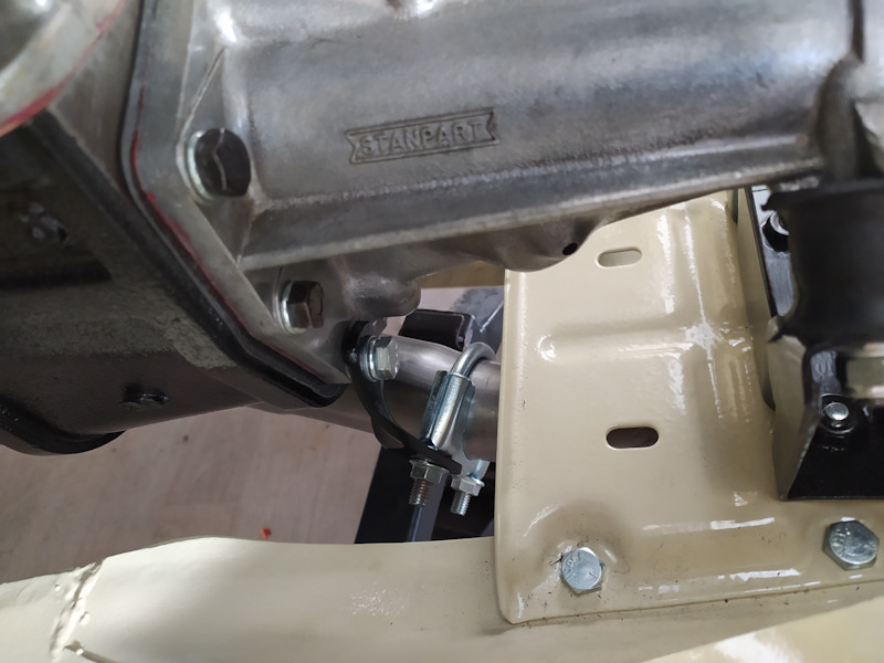 Donc je souhaitais en créer une au niveau de l'intermédiaire d"échappement car il existe une fixation sur le châssis au niveau cul de la boitevitesses / arbre principal et remédier au problème des fixations/jupe AR.