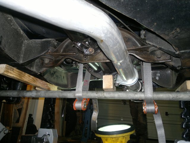 | ou sinon peut-etre autre piste: tu assemble les extrémités à la jambe de suspension de chaque coté ,tu poses ta plaque sur le ressort et toujours 2 goujons en diagonale et tu sangle à l'aide d'une sangle à cliquet autour du pont (cliquet positionné sous le pont) et tu serres | |