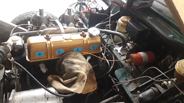 ![]() Vérification que le moteur n’est pas bloqué, yes il tourne normalement avec une clé sur l’écrou de vilebrequin. Le circuit électrique fonctionne à 100% après la mise d’une nouvelle batterie. (éclairage, démarreur, essuie-glace, voyants….) J’ai commandé une nouvelle bobine d’allumage et un kit de réfection des carbus SU. Je vais faire une vidange du moteur aussi avant le démarrage. |