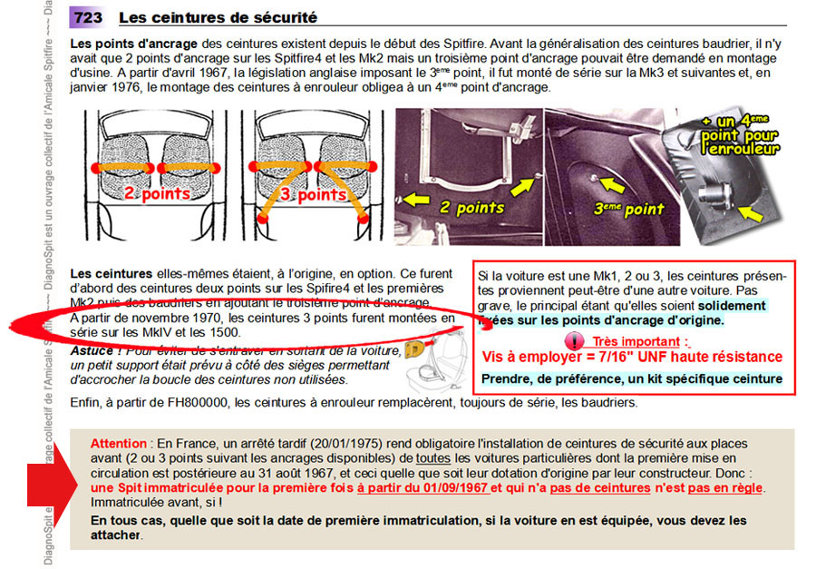 | Bonjour à tous, Ma spitfire MK IV de 1971 a commencé sa vie en Italie - elle ne comporte pas de ceintures de sécurité alors que à ma connaissance le montage était obligatoire en France à partir de 1967. L'inconvénient c'est pour certain rallye de régularité ils demandent des ceintures pour les véhicules post 1967. Puis je monter des ceintures ventrales ? Les 3 points ne me plaisent pas. - elle n'a pas non plus de warning. Est-ce obligatoire ? Pour le CT ( son CT est valide mais fait par l'ancien proprio et je ne voudrais pas de soucis en le repassant ps elle est CG collection) Merci |