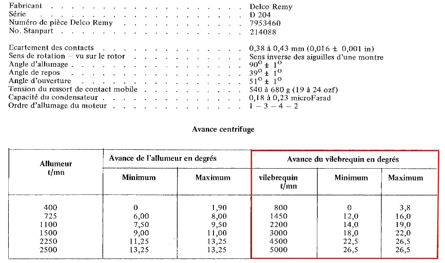 - pour régler l'avance il faut uniquement prendre en compte les valeurs "vilebrequin" en rouge sur le tableau.